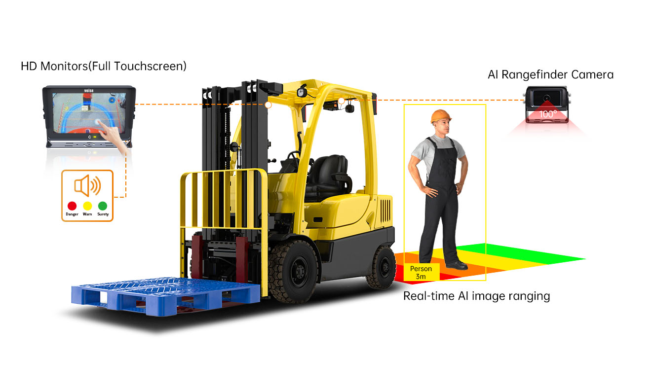Due to the high concentration required by vehicle and machinery operators, they often do not have the time to constantly monitor the vehicle's rearview monitor image screen. AI pedestrian vehicle detecting and warning camera to capture personnel in the monitoring area in real time, It sends warning signals that trigger the built-in buzzer alarm and LED strobe light alerts on the monitor to remind the driver.