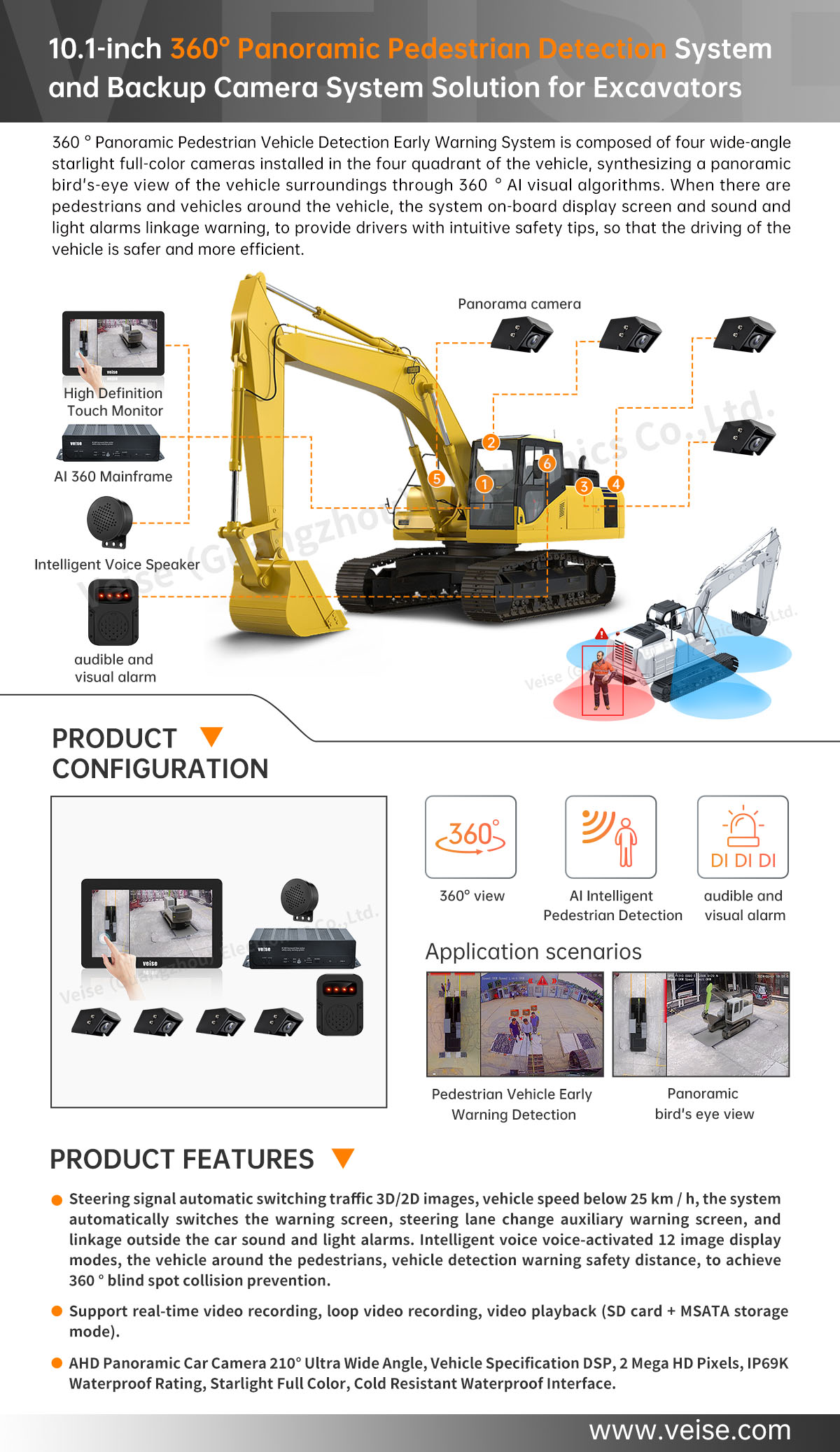 Blind spots in the field of vision increase the risk of accidents: On construction sites, construction machinery vehicles often have many blind spots, such as behind the body, side and rear. These blind zones may hide obstacles or other workers, which will increase the risk of accidents if the driver does not have a clear field of vision. Installing 360 Around View system can provide drivers with all-round vision, so that they can clearly see the environment around the vehicle and reduce the safety hazards caused by blind spots.
